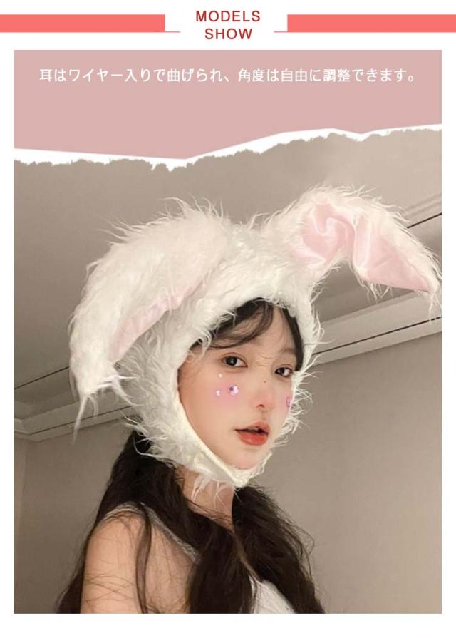 送料無料 もふもふ ウサギ 被り物 かぶりもの 兎 うさぎ うさたん ラビット ホワイト グレー ふわふわ 動物コスプレ アニマルハット アニマル帽子 うさ耳 着ぐるみ帽子 ハロウィン ウサギ 仮装 イースター コスチューム