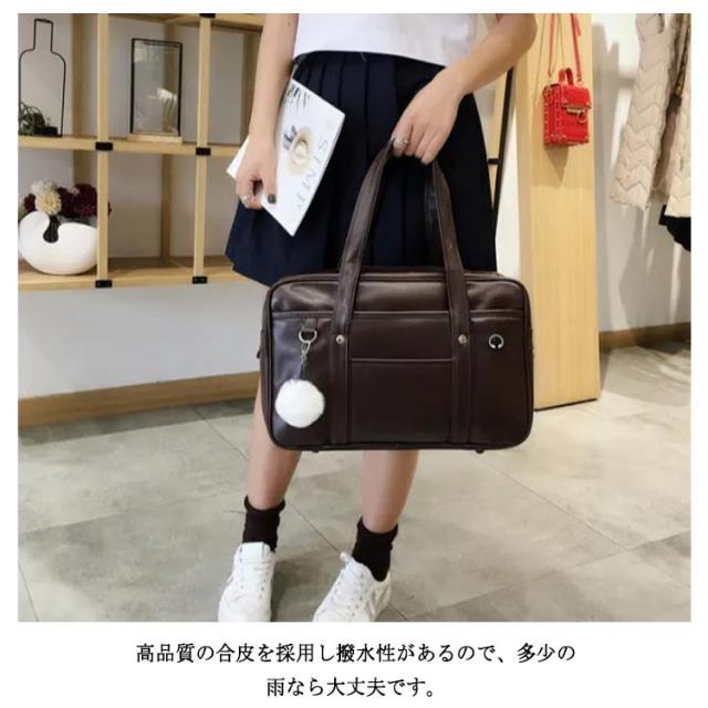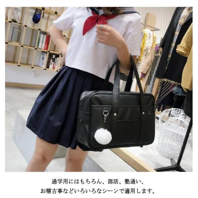 スクールバッグ 女子高生 女子 合皮 スクールショルダーバッグ ボストン 中学生 サブバッグ 手提げ 肩掛け a4 ポンポン付き 可愛い おしゃれ 軽量 学生かばん 通学 バッグ 韓国