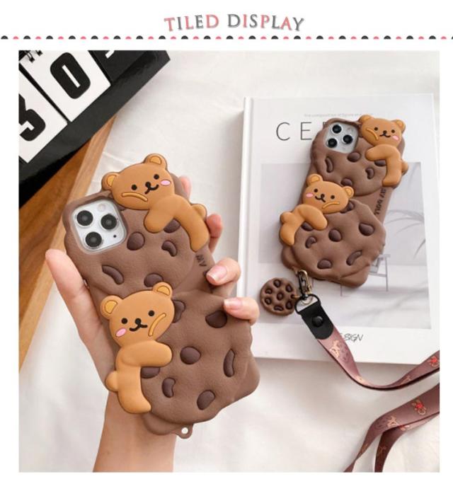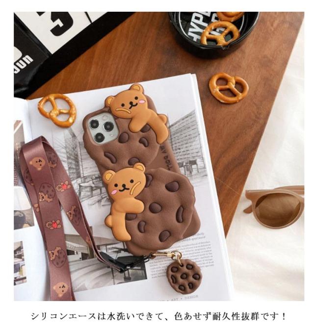 iPhone14Pro シリコンケース かわいい くま iPhone14 ケース 送料無料 ストラップ付き 韓国 耐衝撃 iPhone13 iPhone14Promax スマホケース 14Plus iPhone13Pro iPhone12 iPhone 12 Pro Max iPhone iPhone11 11Pro X XR iPhone 7 8 かわいい 癒し クッキー 人気 マスコット