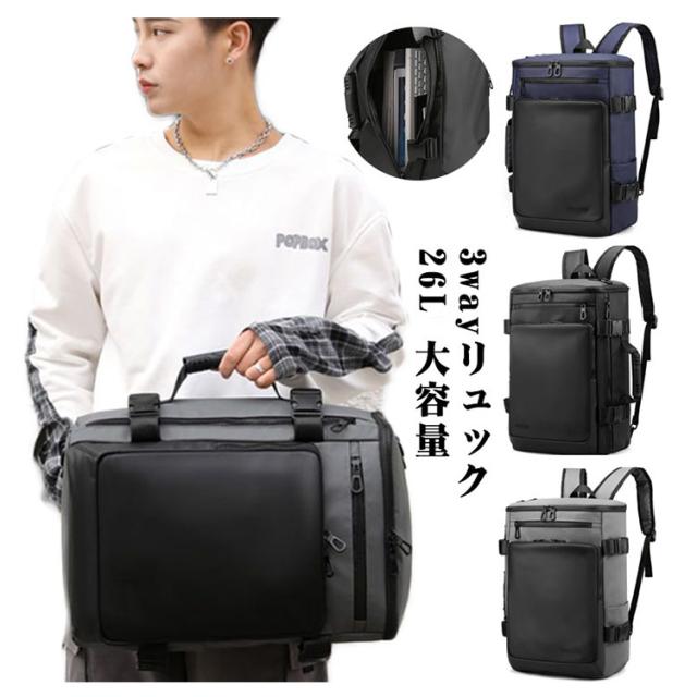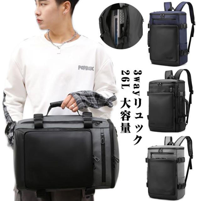 リュック 大容量 26L 3way リュックサック バックパック 大きめ 軽い 通学 スポーツ 高校生 中学生 B4 A4 PC収納 スクエア ボックス型 メンズ レディース A4書類かばん アウトドア 登山 トートバッグ 斜めがけ 肩掛け 手提げ
