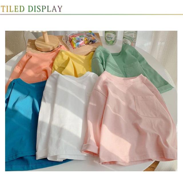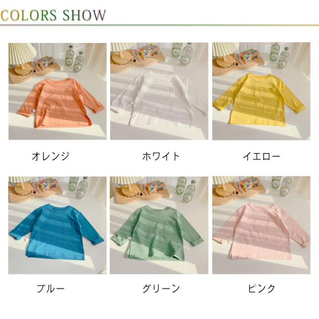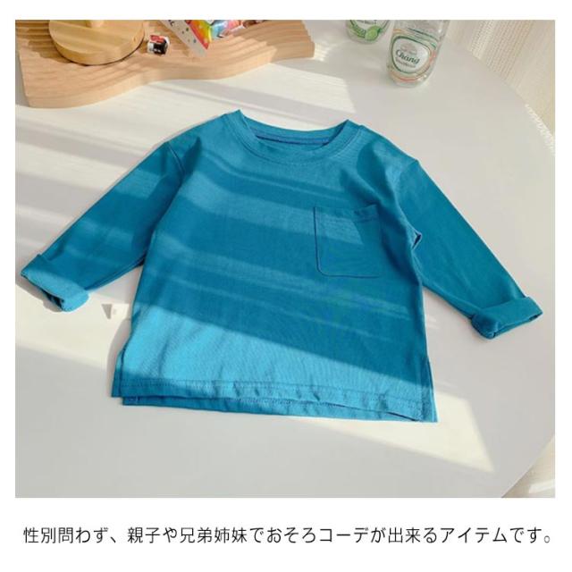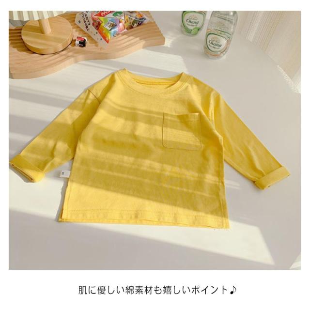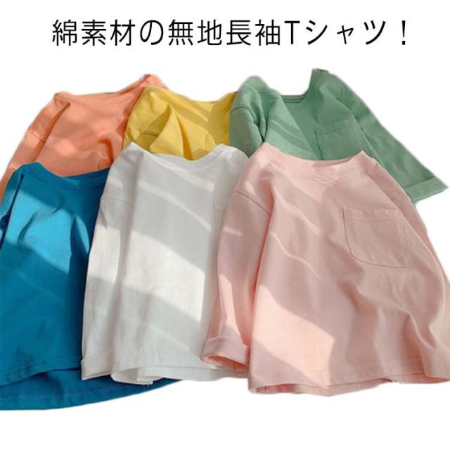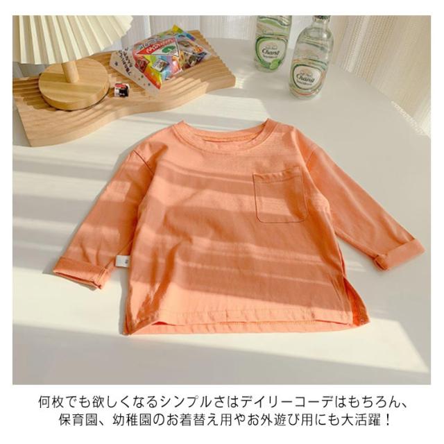 子供服 Tシャツ 長袖 ロンT キッズ 男の子 女の子 ポケット付 送料無料 長そで 長袖tシャツ 無地 春 秋 薄手 綿 コットン カットソー インナー スウェット クルーネック 通園 入園 入学 トップス
