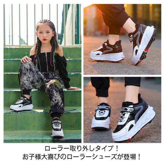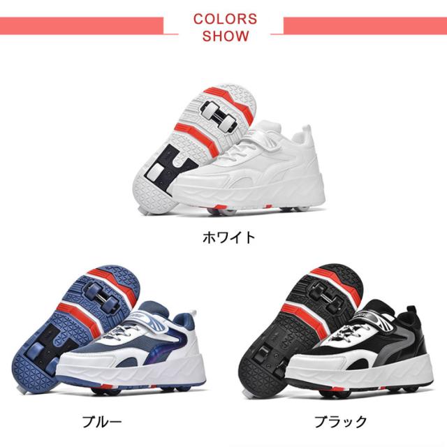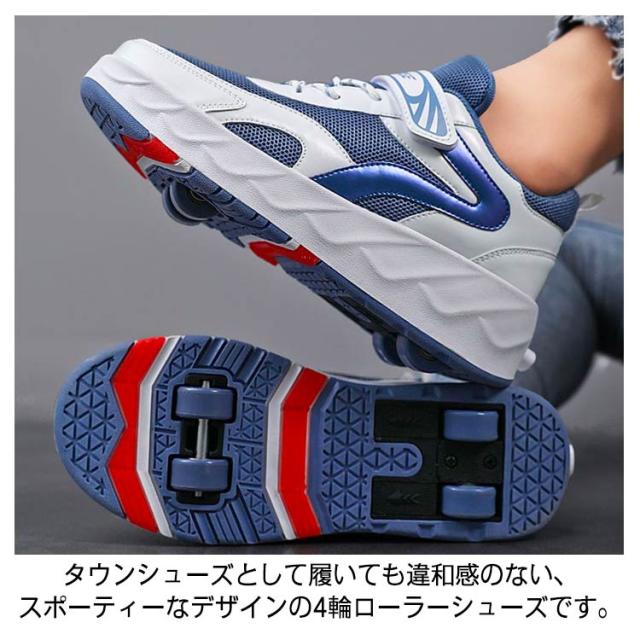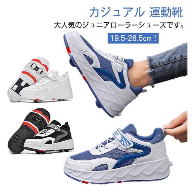 ローラーシューズ ローラースケート キッズ 大人 ローラーシューズ 4輪 2way ローラー取り外しタイプ メンズ レディース 男女兼用 ジュニア スニーカー 運動靴 スポーツ シューズ 通気性 ローラースケート ローラースニーカー 学生 子供用運動靴 19.5-26.5cm
