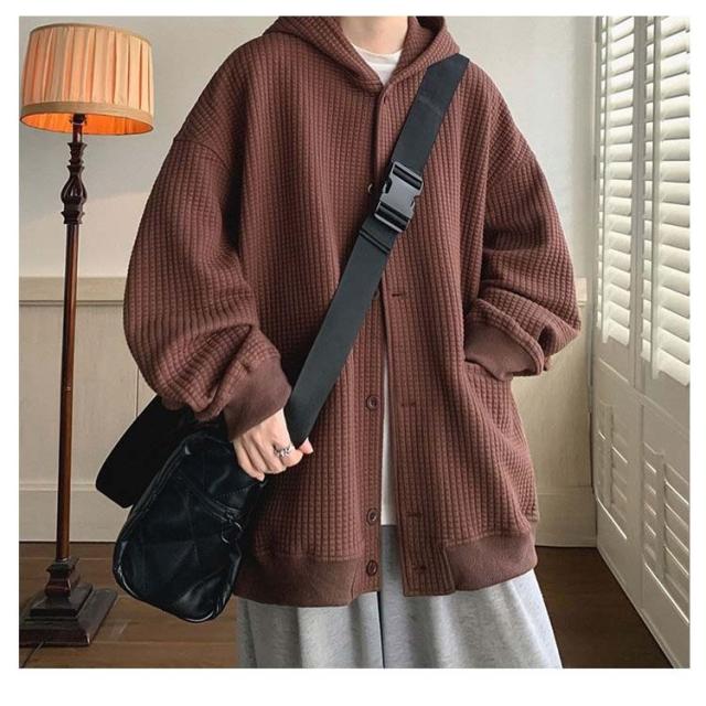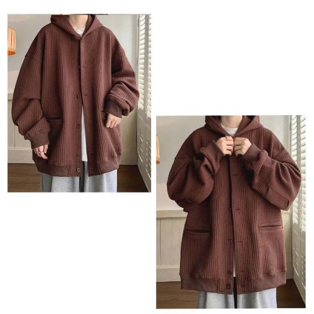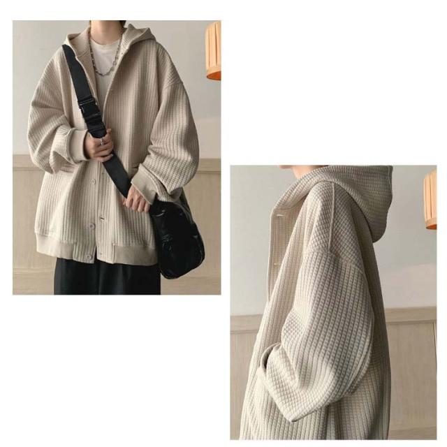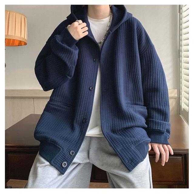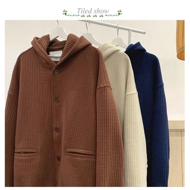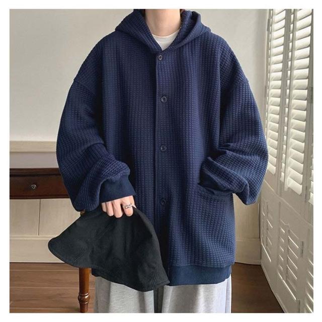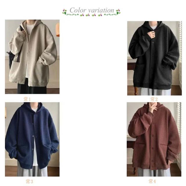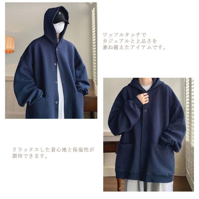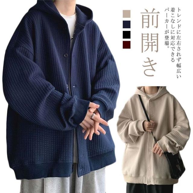 ワッフルタッチ パーカー メンズ ボタンパーカー 前開きパーカー フードパーカー 長袖 ライトアウター ジャケット 羽織り フード付き ゆったり 大きいサイズ カジュアル M L XL 2XL 3XL