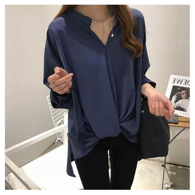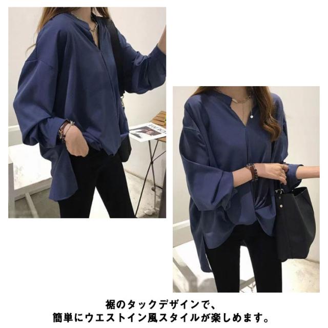 マタニティ ブラウス 授乳口付き スキッパーネック 裾タック 長袖 授乳服 通勤 おしゃれ ゆったり 大きいサイズ 春 夏 無地 全3色