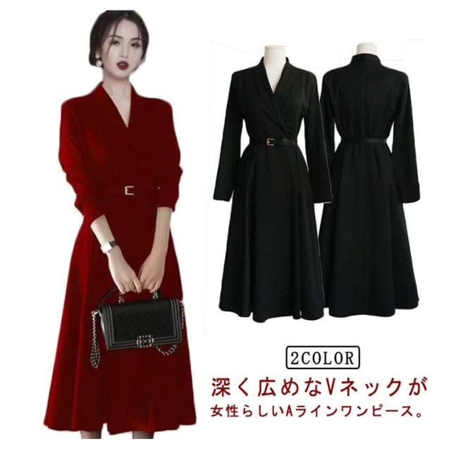 トレンチコート 入学式スーツ レディース フォーマル ワンピース スーツワンピース Vネック 長袖 ロング丈 膝下丈 セレモニースーツ ママスーツ ワインレッド ブラック 入学式 卒業式 卒園式 入園式 母親 結婚式 お宮参り お呼ばれ ドレス 送料無料