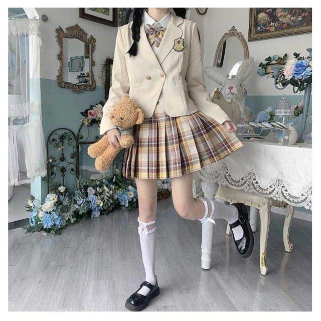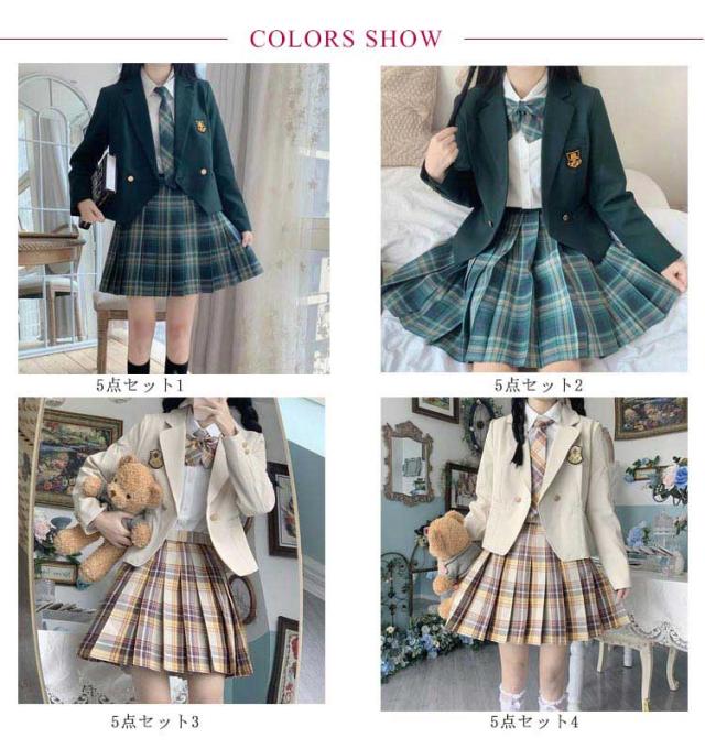 | 【ブレザー+長袖ブラウス+バッジ+チェック柄プリーツスカート+リボン/ネクタイ】の女子用ブレザー制服5点セット。 フォーマルなシーンに!チェック柄のスカートはどれも派手になりすぎない落ち着きのある上品な色合い。発表会やお受験、入学式、卒業式などのフォーマルなシーンに一着は持っておきたいマストアイテムです。 リボンとチェックスカートがとってもキュート。お子様の好みに合わせてお選びください。 入学式や卒業式、結婚式にはもちろん、 モノトーンでまとめているので、法事やお受験といったシーンにも着回せます。ジャケットの下にブラウスをお召頂ければ一年中着回せる万能アイテムです。 | |
