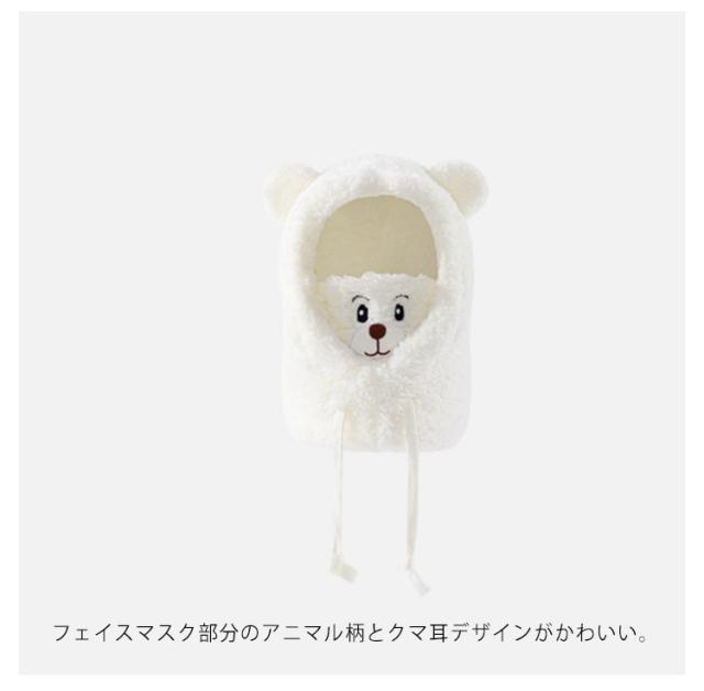 | かわいいクマ耳付き目出し帽。 肌触りが良い柔らか発熱素材! 毎日の寒さ対策に裏起毛のボアでしっかり防寒! フェイスマスク、ネックウォーマー、帽子、マフラー、耳あてとしての役割もこれ1枚。 フェイスマスク部分のアニマル柄とクマ耳デザインがかわいい。 寒くて辛い冬の通勤・通学に!もちろんウィンタースポーツでも大活躍! 花粉対策、防塵、ほこりの侵入を防ぐのにもぴったり! | |