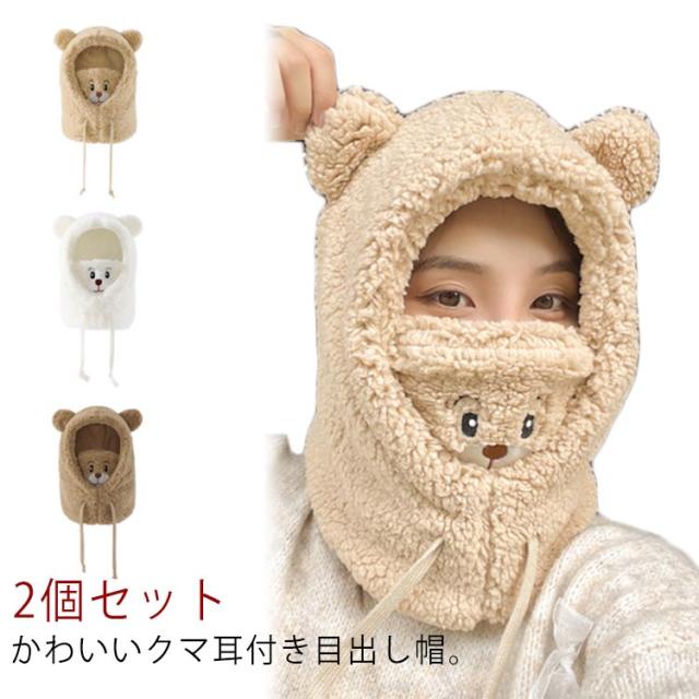 2個セット 目出し帽 目だし帽 レディース 帽子 防寒マスク 防風 耳当て付き ボア帽子 保温 あったか フェイスマスク ネックウォーマー 紐 調整可能 小顔効果 スキー用品 送料無料 プレゼント 洗える 通勤 通学