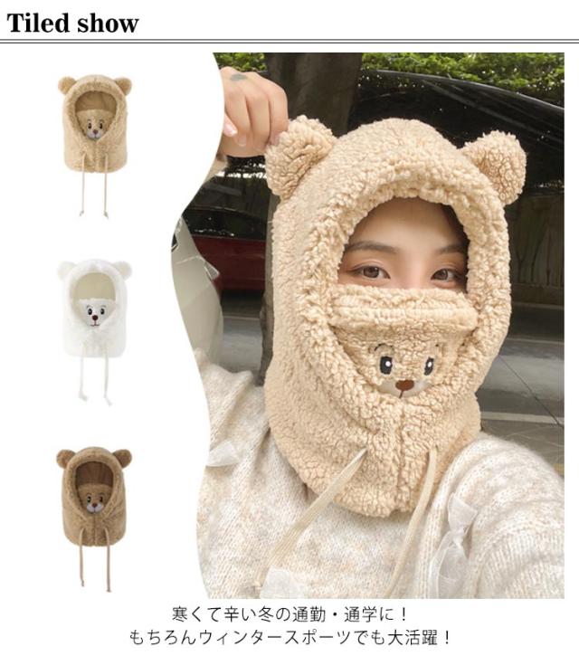 | かわいいクマ耳付き目出し帽。 肌触りが良い柔らか発熱素材! 毎日の寒さ対策に裏起毛のボアでしっかり防寒! フェイスマスク、ネックウォーマー、帽子、マフラー、耳あてとしての役割もこれ1枚。 フェイスマスク部分のアニマル柄とクマ耳デザインがかわいい。 寒くて辛い冬の通勤・通学に!もちろんウィンタースポーツでも大活躍! 花粉対策、防塵、ほこりの侵入を防ぐのにもぴったり! | |