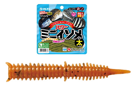 「パワーイソメソフト」と同じ素材を使用したミニタイプ。頭部は太くボリュームがあり、尻尾は細めで水を受けるとよく動く形状。小粒でも、魚の食い気を強く刺激します。「パワーミニイソメ中」はそのまま1本で使うのはもちろん、小型の魚を狙うときは、くびれ部分から切ると吸い込みやすさがアップ。くびれがあってしなやかに動く「パワーミニイソメ太」は投げて巻いて魚を誘うことに最適な食わせエサです。大きい魚には「パワーミニイソメ極太」がオススメ。一口サイズでソフトに仕上げ、食い込みが抜群です。選べる3タイプでターゲットの幅が広がります。