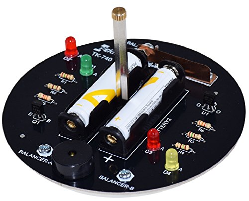 ・コマを回すことで発生する遠心力を利用した遠心スイッチ搭載のコマの工作キットです。遠心スイッチがONになると発光ダイオードが点灯し、メロディICの音が流れます。