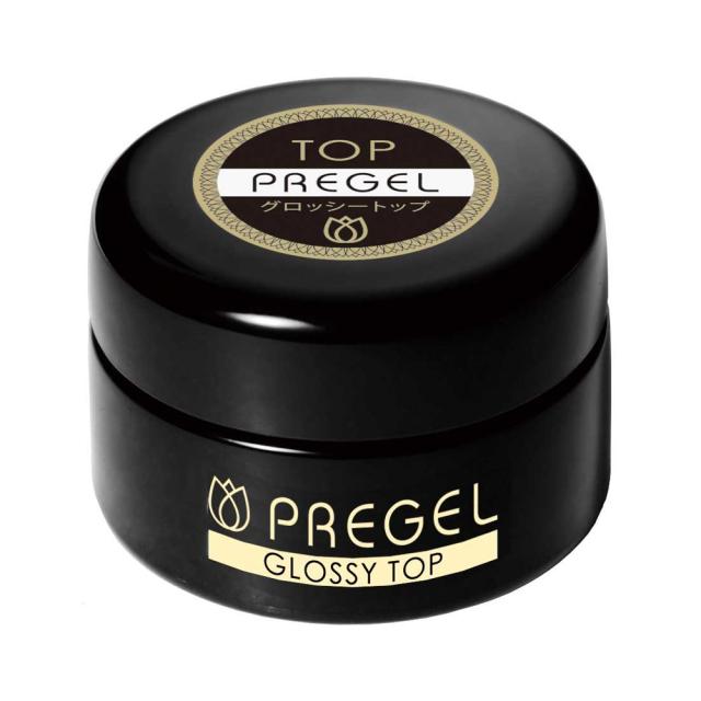 ◆商品名:PRE GEL グロッシー 4g UV/LED対応<br>黄ばみをなくし、カラーがより鮮明に映える透明度を追求したジェル。キャンジェルに匹敵する安定したツヤと輝きが持続します。(LED30秒、CCFL60秒、UV60秒)