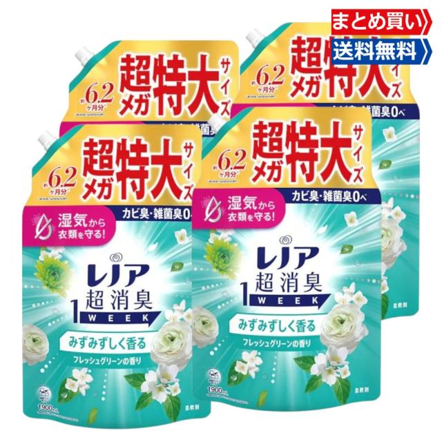 レノア 超消臭1WEEK 柔軟剤 フレッシュグリーンの香り 詰め替え 約6.2ヶ月分 1900ml×4袋 大容量