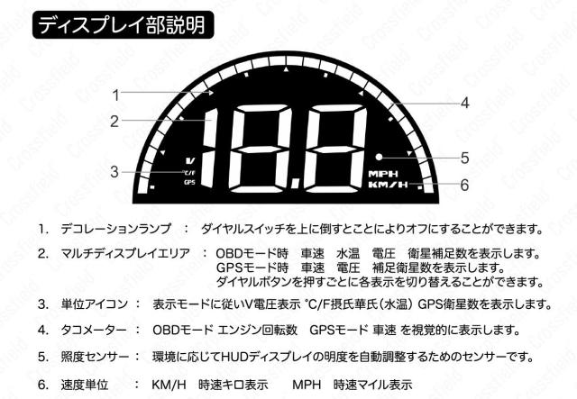 速度計/エンジン回転計(RPM)/水温計/バッテリー電圧/燃費/時計/海抜高度等、多彩な情報を確認できるよう鮮明な投射表示を行いますので、運転中に視線をずらすことなく、様々な走行情報を確認することができます。