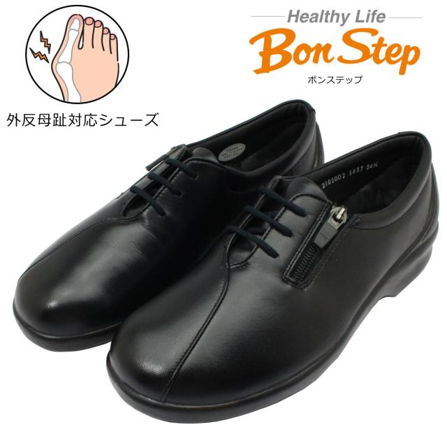 | ボンステップ Bon Step レディース 5657 外反母趾対応 コンフォートシューズ ウォーキング 紐靴 ファスナー付 幅広4E 日本製 大塚製靴 ブラック 黒【お取り寄せ商品】 |