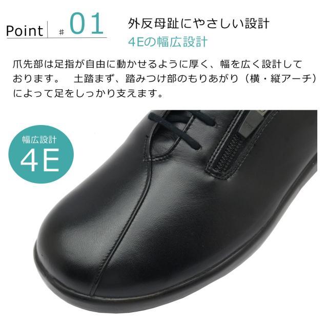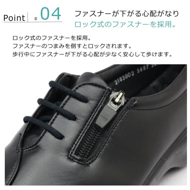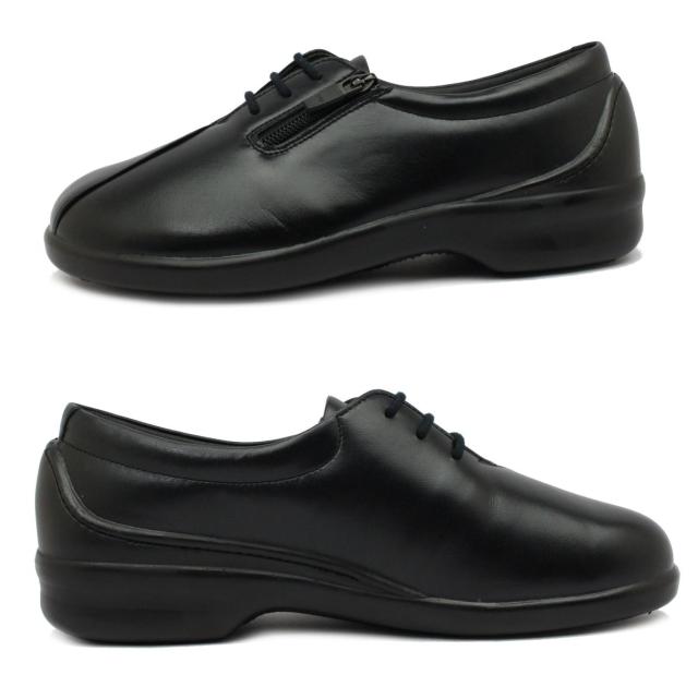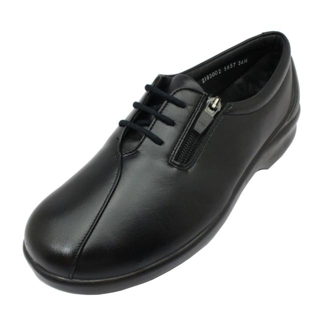 ボンステップ Bon Step レディース 5657 外反母趾対応 コンフォートシューズ ウォーキング 紐靴 ファスナー付 幅広4E 日本製 大塚製靴 ブラック 黒【お取り寄せ商品】