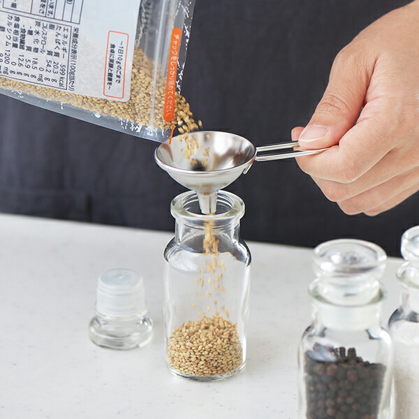 料理の「いろは」はおいしさのポイントを手軽におさえるための便利で機能的な調理小物。 お醤油差しや調味料瓶への移し替えに便利なミニサイズ。取っ手があるので、安定した状態で移し替えができます。