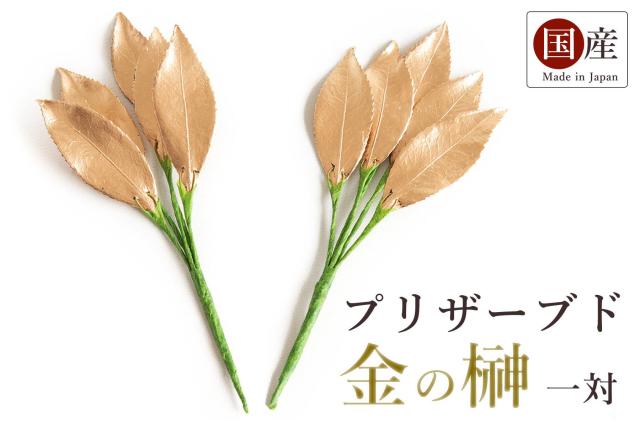神具 金の榊 造花ではない天然の葉 プリザーブド榊 一対 神棚用 お供え 国産