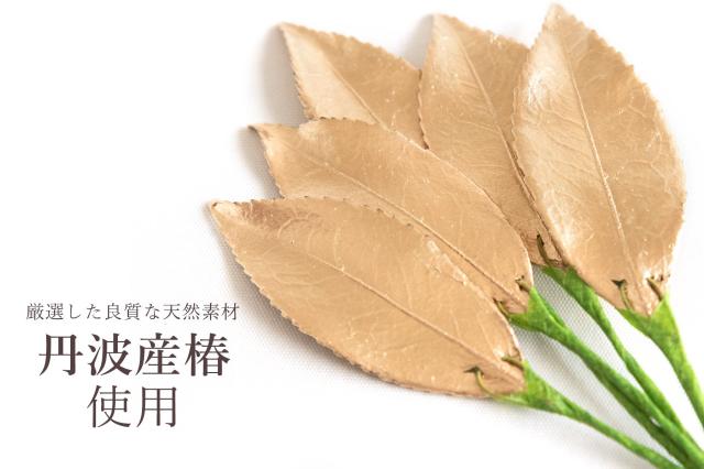厳選した丹波産椿(つばき)の葉を1枚1枚ていねいに編み込んで製作したプリザーブド加工の榊、2本一対となります。