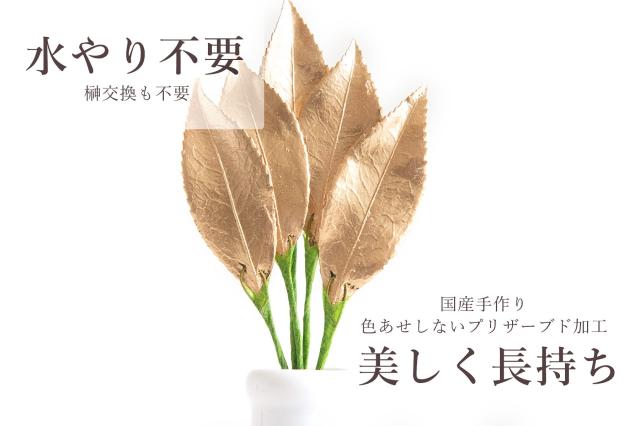 プリザーブド加工の榊は枯れることがないので、交換の必要がなく、水やりも不要。