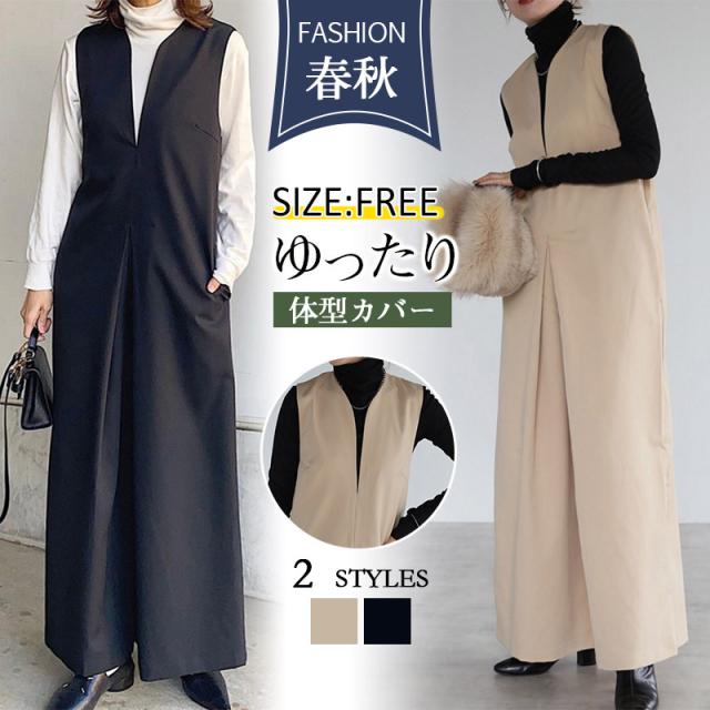 サロペット オーバーオール ディープVネックオールインワン サロペット レディース 40代 50代 30代 20代 春 夏秋 冬
