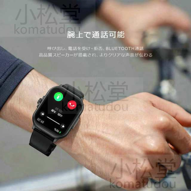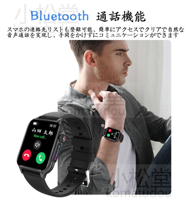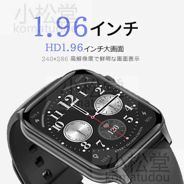 スマートウォッチ 通話機能付属 着信通知 ipx67防水 心拍計 血圧計 活動量計 歩数計 睡眠測定 1.96インチ大画面 IPHONE Android 対応 大容量 バーコード決済