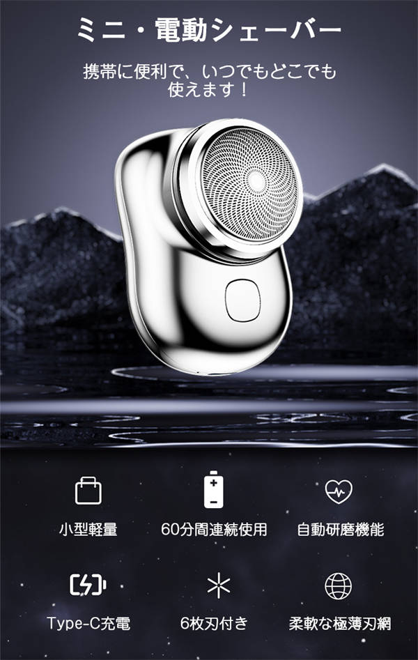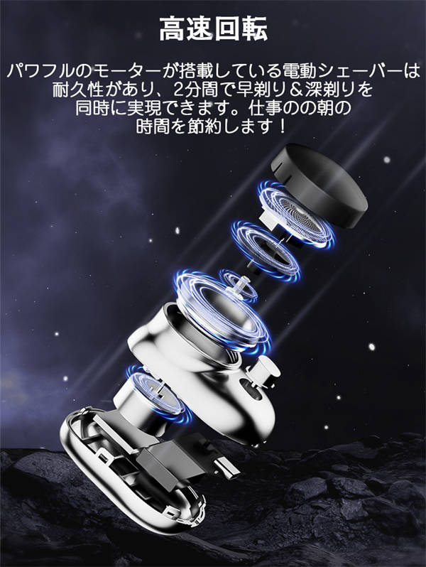 電動シェーバー メンズ 男性用 小型 メンズシェーバー ミニ コンパクト 電気シェーバー 男性 シェーバー 深剃り 回転式 メンズシェーバー 男性 usb充電式 電気カミソリ 電気剃刀 充電式 ヒゲソリ 自動研磨機能 6枚刃 携帯便利 出張 旅行