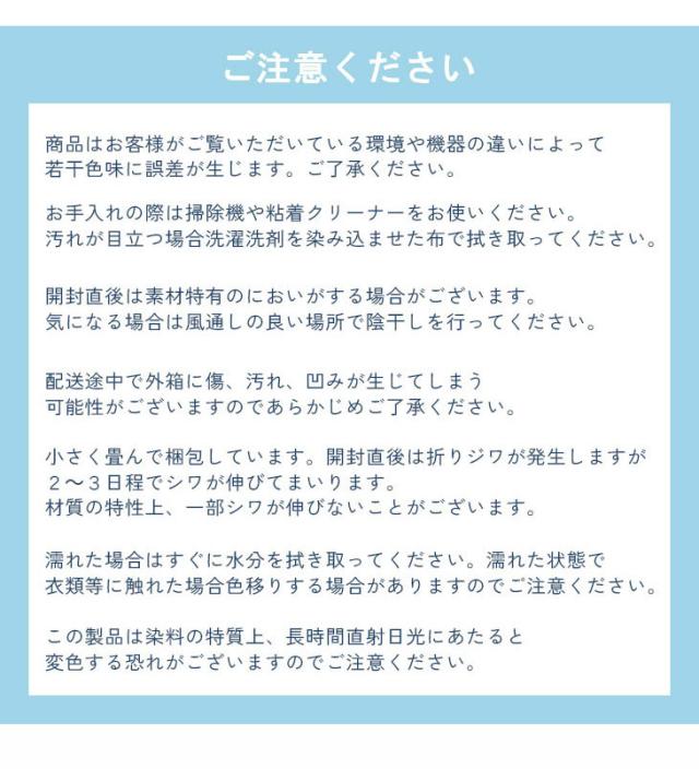 ・お手入れの際は掃除機や粘着クリーナーをお使いください。