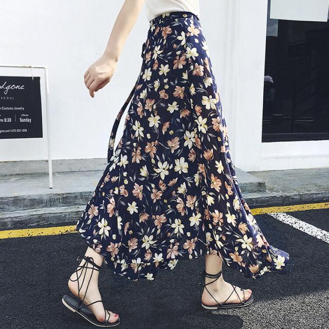 flower フレアシフォン ラップスカート K-085-1 巻きスカート ロングスカート マキシ リゾート 花柄 モチーフ