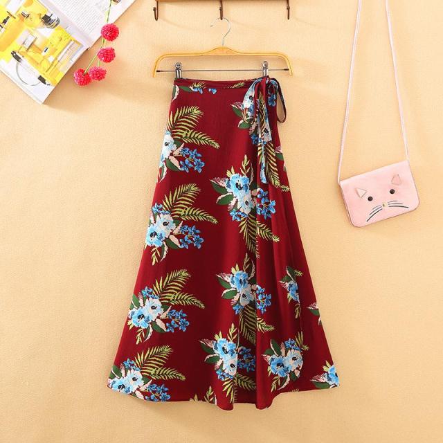 flower フレアシフォン ラップスカート K-085-18 巻きスカート ロングスカート マキシ リゾート 花柄 モチーフ