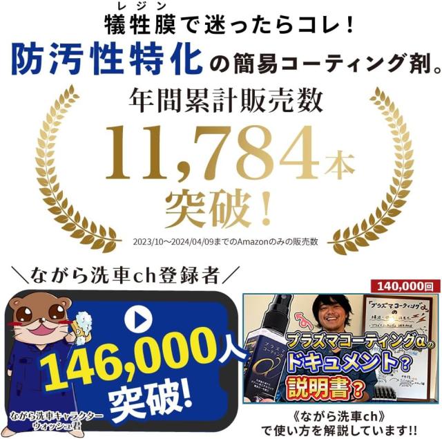 【ながら洗車】プラズマコーティングα 120ml ポーチセット『 電撃走る。防汚性 』犠牲膜で迷ったらコレ コーティング剤 車 滑水性シリコーンレジン