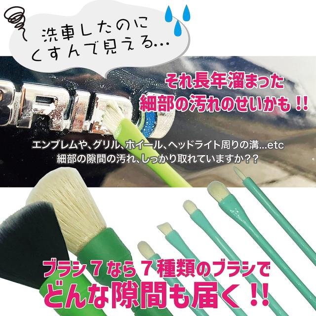 【ながら洗車】Brush 7『 ディテーリングにシュワッチを 』 用途別細部洗浄ブラシ 徹底洗車 ディテーリングブラシ 7本入り カーケア エンブレム掃除 タイヤホイール洗浄 隙間掃除