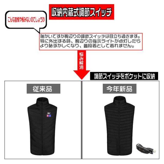 電熱ベスト レディース ヒーターベスト 婦人用 日本製ヒーター 点灯スイッチ内蔵 電熱ジャケット 調節スイッチ内蔵 三階段温度調節 改良 節電対策