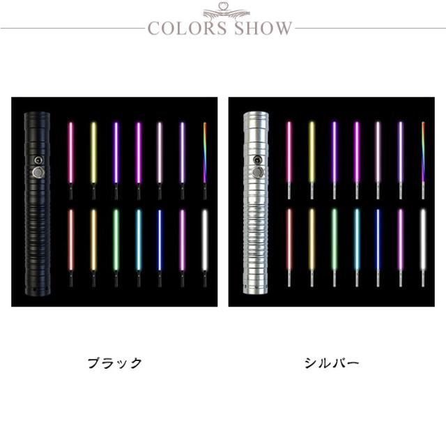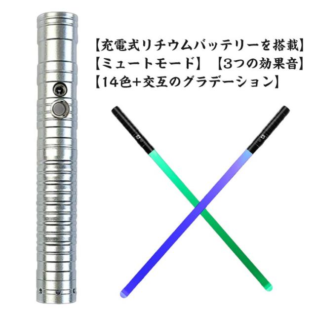 | 【充電式リチウムバッテリーを搭載】充電時間: 約3-4時間。充電用ケーブルをLEDライトセーバーのポートに差し込みますと充電を開始します。※充電中のご使用はできません。 【14色+交互のグラデーション】ボタンを押すごとに14色に光る、カラーバリエーションを楽しめます。電源ボタンを押すごとに色が切り替わり、全15種類のパターンを楽しめます。(14色+交互のグラデーション) 【3つの効果音】サウンドモード:スイッチを短押しすると、駆動音とともにセーバーが発光し、待機音が流れます。スイッチを押しすると、スイッチを押して14色の切り替えと背景音が伴います。衝撃に合わせ、衝撃音が鳴り響きます。 【ミュートモード】スイッチを3S長押しすると、駆動音とともにセーバーが発光します。スイッチを押しすると、スイッチを押して色を切り替えます。切り替えの過程に背景音はありません。 | |