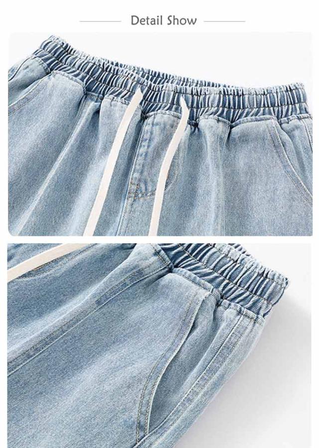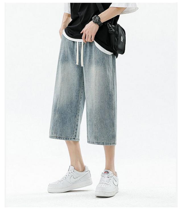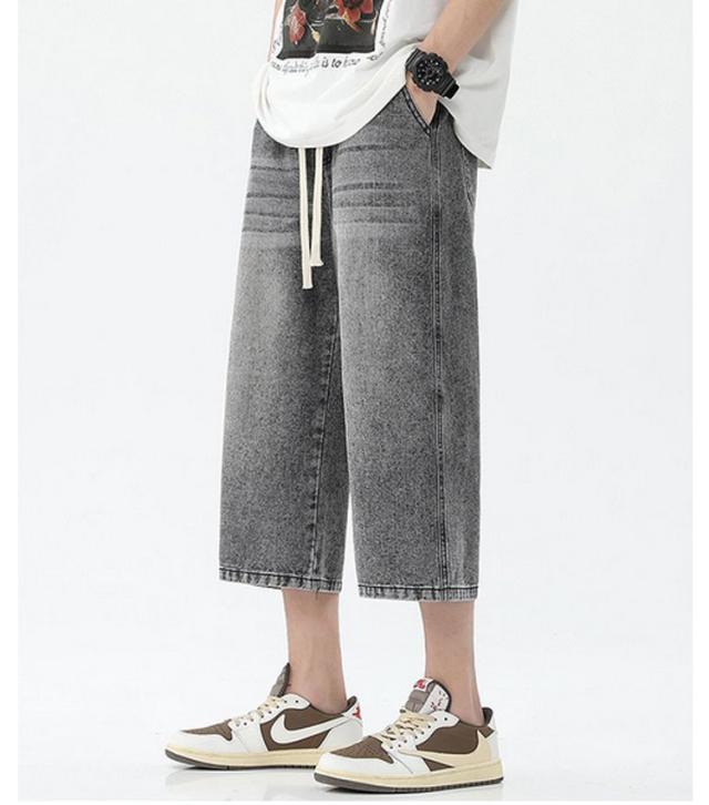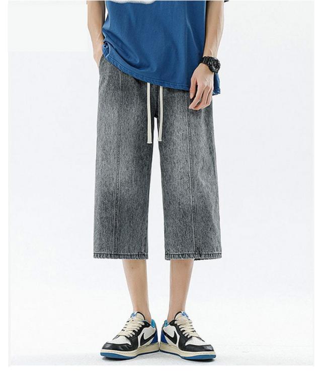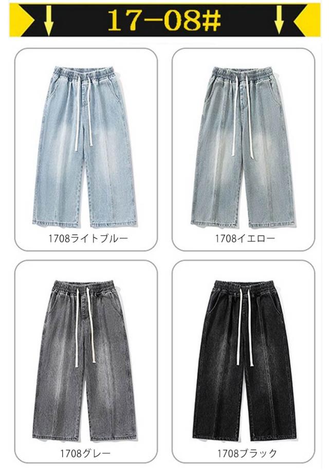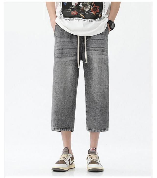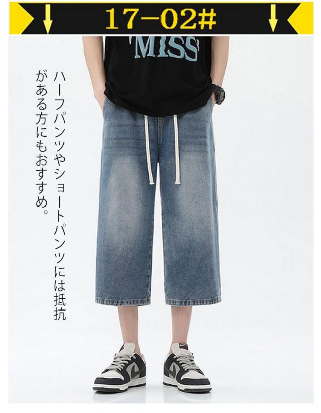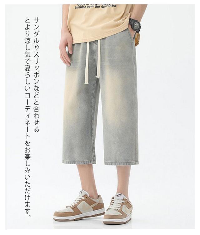 デニムパンツ ワイドパンツ メンズ 7分丈 バギーパンツ カジュアル ストレート 春夏 秋 ジーンズ おしゃれ 半ズボン ジーパン 大きいサイズ 太め ゆったり 体型カバー デニムパンツ イージーパンツ ゴムウエスト クロップドパンツ 快適 ギフト 送料無料