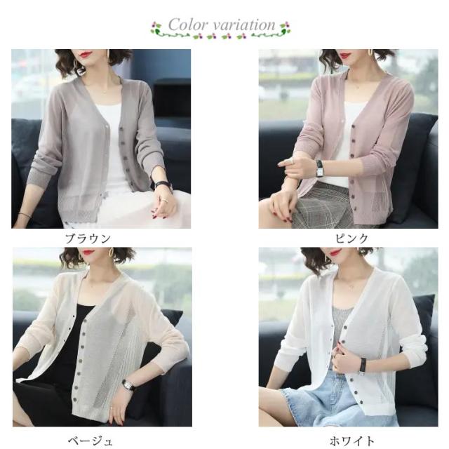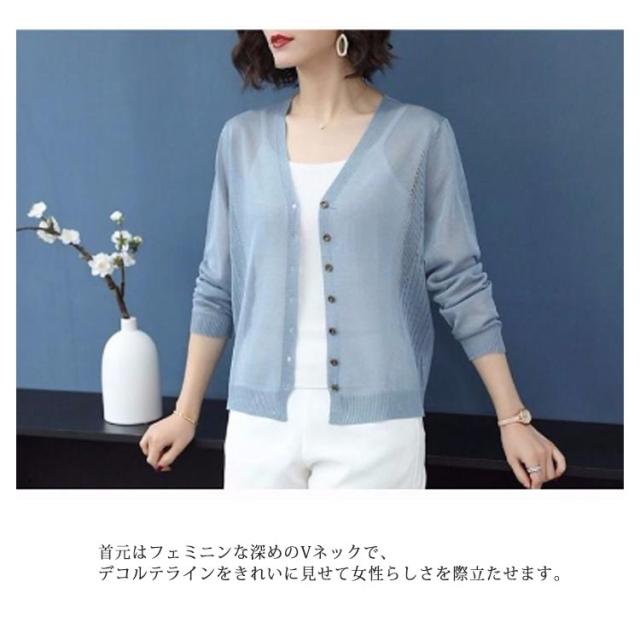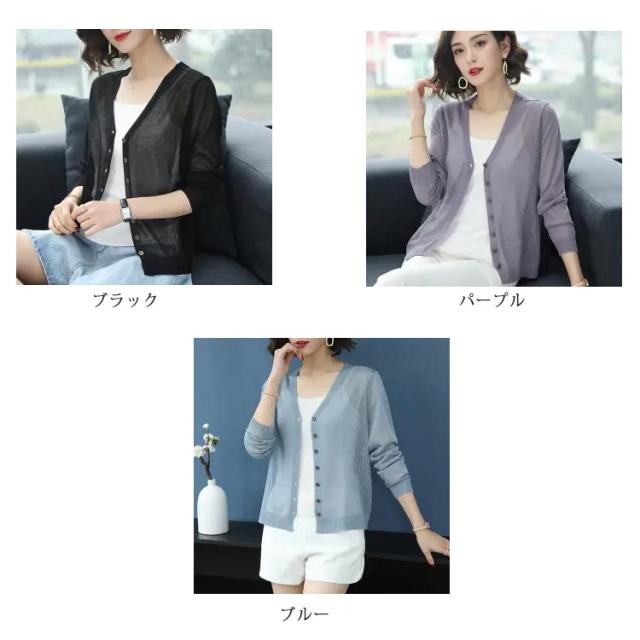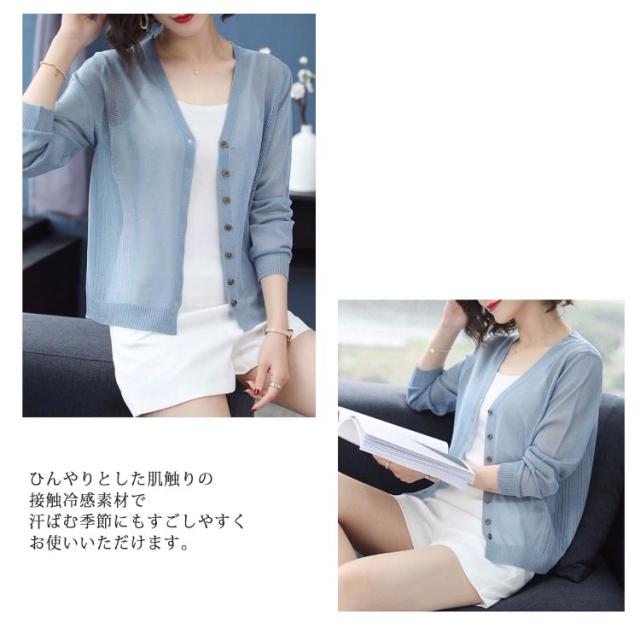 冷感 カーディガン サマーニット レディース 送料無料 ニット トップス Vネック 紫外線 対策 長袖 薄手 カジュアル 無地 着回し 薄手 涼しい 透け感 オフィス 涼しい ショート丈 夏 秋