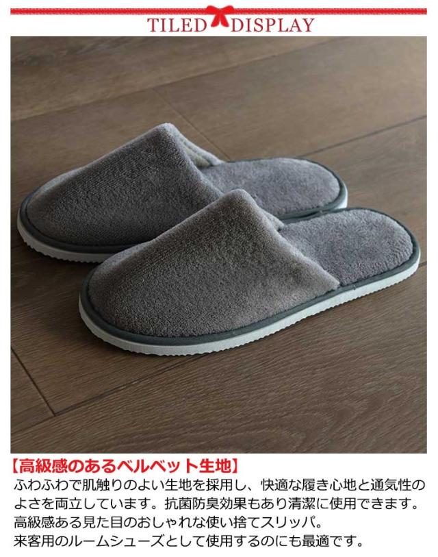| 底はEVAクッションを採用、肌にやさしいベルベット生地を使用した男女兼用使い捨てスリッパ。【個包装】 【高級感のあるベルベット生地】ふわふわで肌触りのよい生地を採用し、快適な履き心地と通気性のよさを両立しています。抗菌防臭効果もあり清潔に使用できます。高級感ある見た目のおしゃれな使い捨てスリッパ。来客用のルームシューズとして使用するのにも最適です。 【洗濯でき、個包装】 汚れても簡単に洗えて繰り返しの使用も可能。 1足ずつ個包装されているため衛生面でも安心して保管でき、持ち運びにも便利、災害時や旅行などに役立ちます。 【高級ホテル仕様】 上質な素材と丁寧な縫製で作られていて、数日間繰り返し使えるところが魅力です。 ソールは厚いEVA素材を採用し、クッション性や履き心地は抜群です。長時間履いても疲れにくい。 使い捨てスリッパの中には紙製など底が薄いものが多いです、底が薄いものは短時間の使用や簡易的な用途であればよいですが、旅行やホテル、飛行機のフライトなどで長時間履いていると疲れてしまうことも。足の疲れを少しでも減らしたいなら、弊店のこの厚みのある使い捨てスリッパがおすすめ、履き心地抜群です。 【滑りにくい加工と素材】 カーペットが敷かれた場所ではタオル地や不織布の底面でも大丈夫ですが、フローリングなど滑らかな床では歩きにくかったり滑ったりしてしまうことも。滑りにくい使い捨てスリッパを選ぶコツは底面の素材にあります。本製品はEVAというビーチサンダルなどにも使われる素材が底面になっていると、比較的滑りにくく歩きやすいです。 【男女兼用】実用性とデザインに優れた柔らかいスリッパ、使い捨てには見えないおしゃれな色合いのベルベット地製、男女問わず使えます。 | |