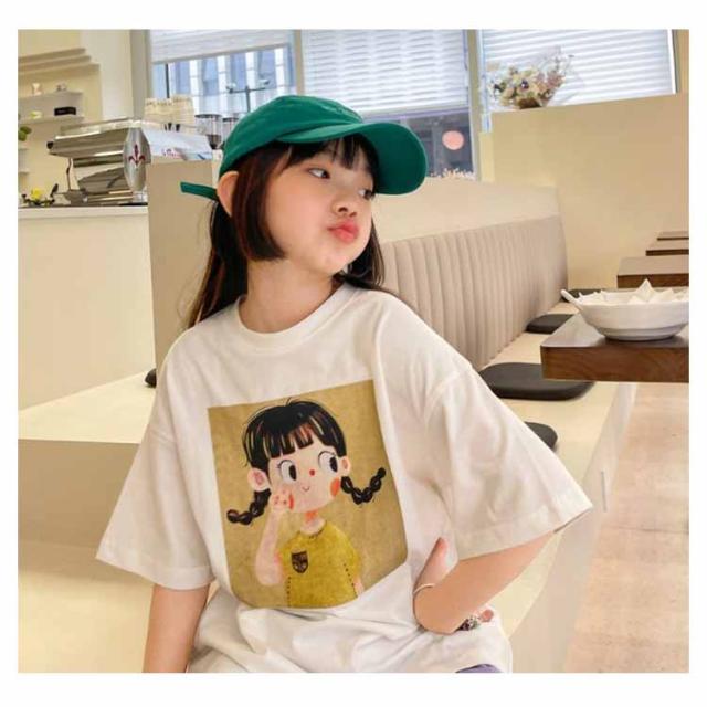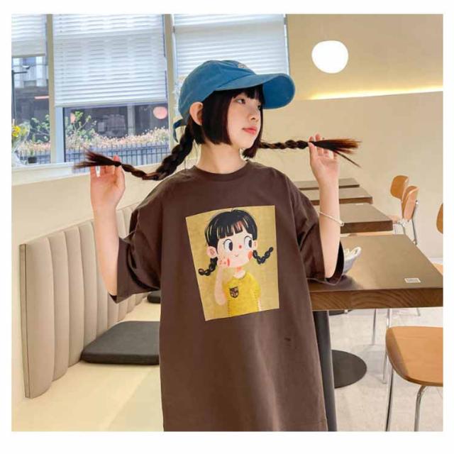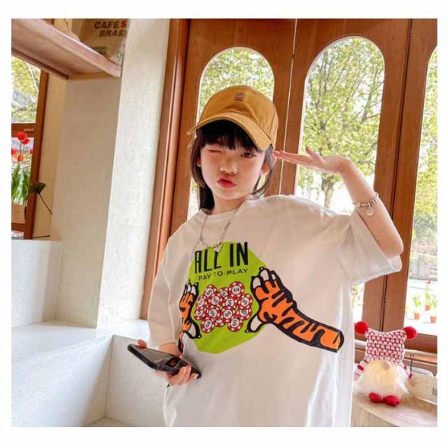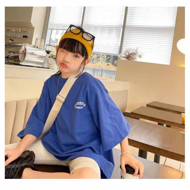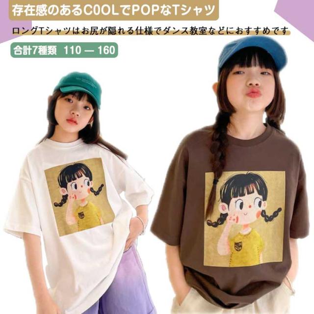 キッズ 半袖 Tシャツ 女の子 ロング丈 BIG tシャツ ビッグシルエット ストレッチ ジュニア ガールズ トップス ロンT ゆったり 子供服 小学生 中学生 ダンス 衣装 韓国子供服 大人っぽい 子ども服 こども服 運動会 春 夏 通園 通学 送料無料 110 120 130 140 150 160