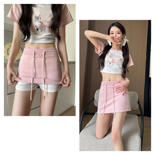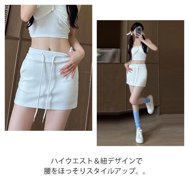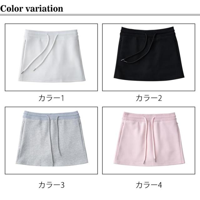 | 全4色、シンプルなデザインのスウェットスカートです。 ハイウエスト&紐デザインで腰をほっそりスタイルアップ。。 丈は短いけれどショートパンツの裏地付きなので安心して履けるデザインです。 スポーツウェアからデイリーカジュアルな場所まで活躍してくれるスカートです。 | |