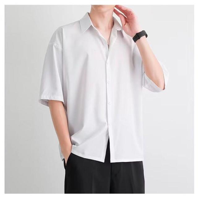 シャツ メンズ ゆる 五分袖 半袖 長袖 サマーシャツ 涼しい 接触冷感 ワイシャツ 韓国 ポロネック オーバーサイズ 爽やか 開襟シャツ 快適 速乾 派手 ストリート系 トップス カジュアル サラサラ ビジネス ワイシャツ ゆったり 夏 秋 ボタンダウン 春 無地 送料無料