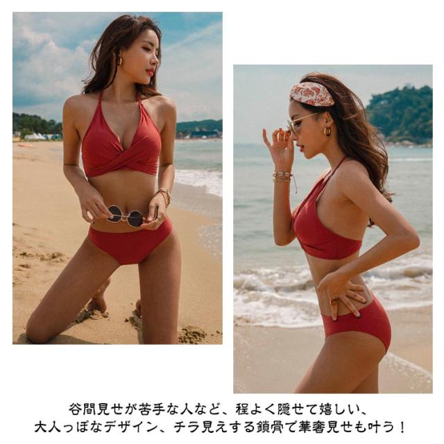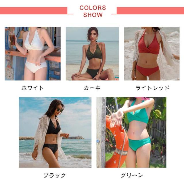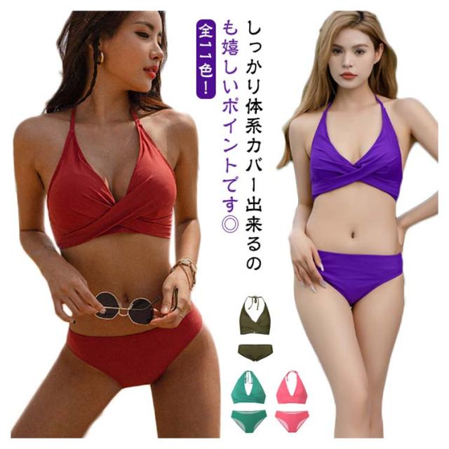 全11色!ビキニ レディース 20代 セット 水着 可愛い セクシー おしゃれ 大人 タンキニ みずぎ 体型カバー 送料無料 ノンワイヤー セパレート 韓国風 無地 カーキ オトナ女子 盛れる きれいめ