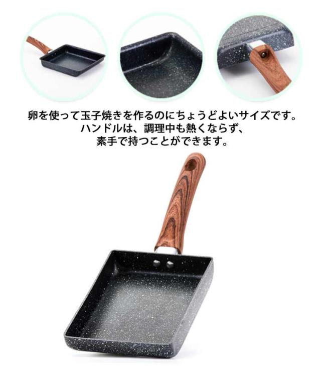 | 【玉子焼用フライパン】【IH・ガス・直火対応】【焦げ付きにくい】 ふっくらふわふわ。おいしい玉子焼きは食卓の主役です。 蓄熱性の高い、ふっくらした玉子焼きが焼ける角型のフライパンです。 こびり付きや焦げ付きを抑えるコーティング加工のフライパンでふっくら美味しい玉子焼をつくりましょう。 卵を使って玉子焼きを作るのにちょうどよいサイズです。 ハンドルは、調理中も熱くならず、素手で持つことができます。また、アクセントとなり、インテリアに溶け込むデザインにしてくれます。 | |