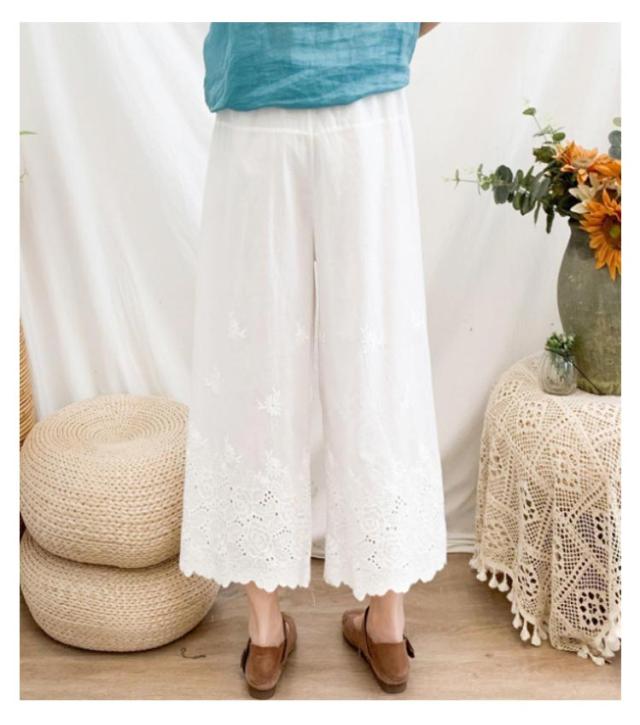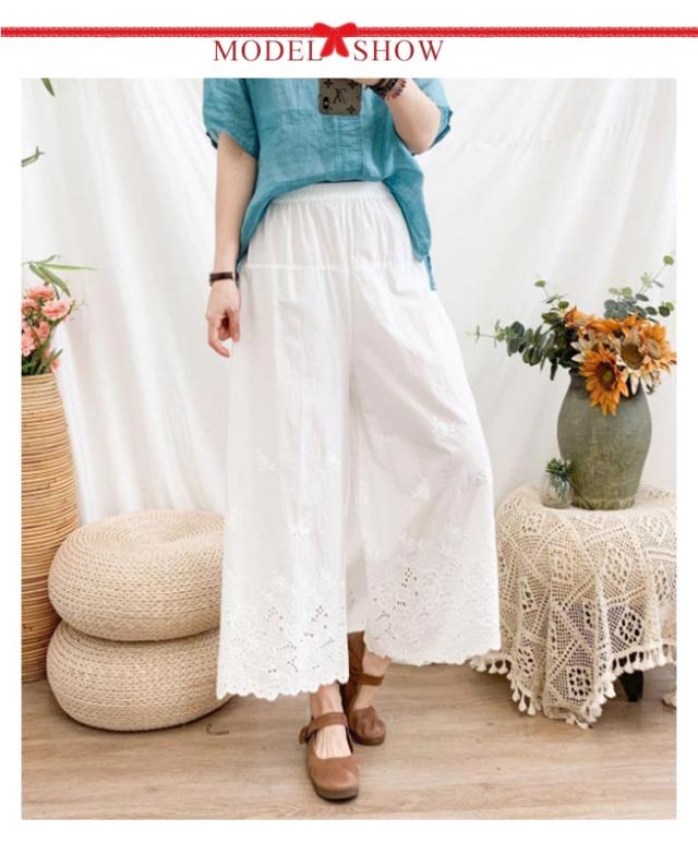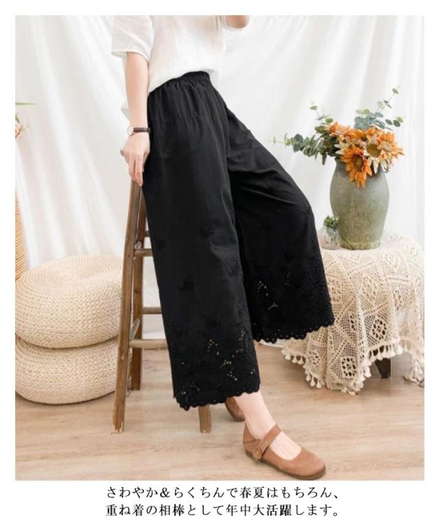 ペチパンツ 裾レース ワイドパンツ レディース ペチコート パンツ ウエストゴム スカラップ レース 刺繍 ガウチョ パンツ コットン 綿 ボトムス レイヤード用 重ね着用 レースパンツ 透け防止 ワンピ下 無地 大人可愛い 白 【送料無料】