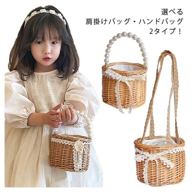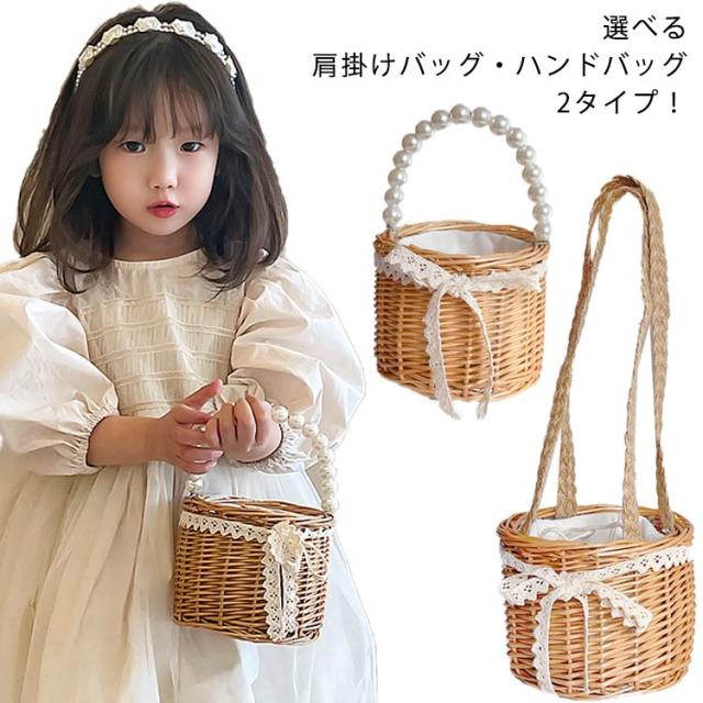 かごバッグ キッズ 女の子 ショルダーバッグ 肩掛け ハンドバッグ 手提げ 小さめ 丸い 浴衣 カゴバッグ 巾着 軽い 小さめ 子供 可愛い ナチュラル カジュアル 編み込み サマーバッグ 夏バッグ レース パール 子ども用 ジュニア 結婚式 卒業式 春夏 ギフト プレゼント