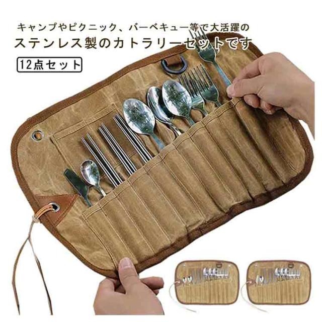 キャンプ 食器セット カトラリーセット 12点セット アウトドア レジャー キャンプ食器 ステンレス 折り畳み カトラリー コンパクト キャンプ飯 フォーク スプーン ナイフ 清潔 ピクニック バーベキュー 収納ケース付き 箸 防災 防災グッズ 非常用 登山 BBQ 送料無料