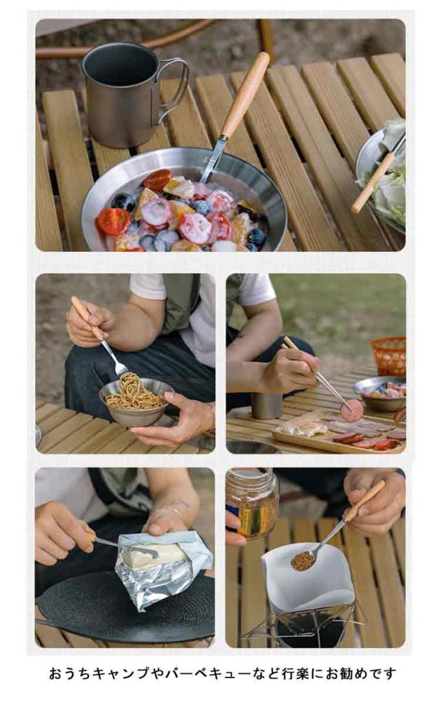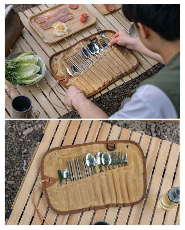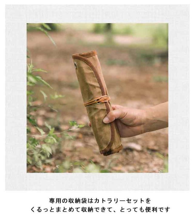 | キャンプやピクニック、バーベキュー等で大活躍のステンレス製のカトラリーセットです 錆びにくく衛生的で耐久性にも優れているステンレス素材を採用しています。 とても扱いやすく、汚れも落ちやすくお手入れしやすいです カトラリーケースはしっかりとしたキャンバス素材を使用、ある程度の撥水性能はございますが防水ではございません 専用の収納袋はカトラリーセットをくるっとまとめて収納できて、とっても便利です おうちキャンプやバーベキューなど行楽にお勧めです | |