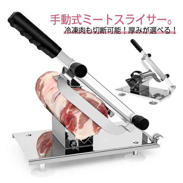 肉スライサー ミートスライサー 手動スライサー 手動式 生ハムスライサー 肉切機 肉用スライサー 0.3mm 〜 8mm 家庭用 業務用 手動ミートスライサー 冷凍肉スライサー 冷凍肉 野菜 パン 餅 すき焼き肉 ステンレス フードスライサー 多目的