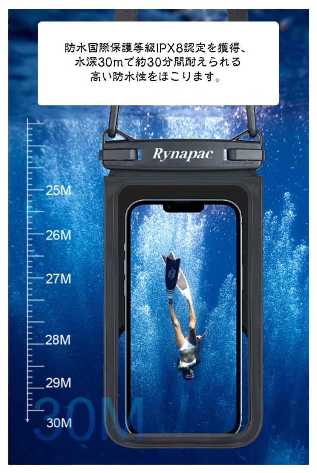 | 防水ポーチとして貴重品や財布・コインも持ち運び出来る便利なスマホ用防水ケース! 国際規格IPX8を取得、水深20mで30分間の防水が可能という完全防水ケースです! 防塵、耐寒、耐傷、耐圧に強いTPU素材で作られました。 高感度かつ高透明度を持つ高品質TPU素材を採用し、装着後もデバイス本来の見た目を損ないません。Face ID認証も一瞬ででき!大切な思い出を綺麗に残すこともできます。 防水スマートフォンケースは一年中使えて、夏以外でも大活躍するんです。 スキーや温泉・海・お風呂・水遊び・プールなどアウトドアに最適 | |