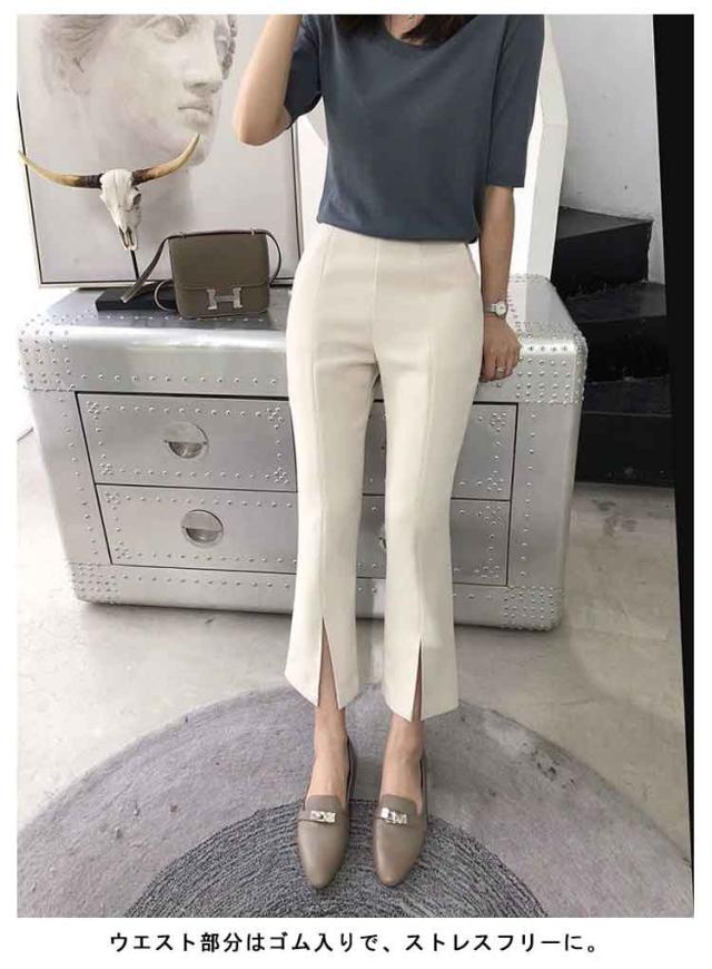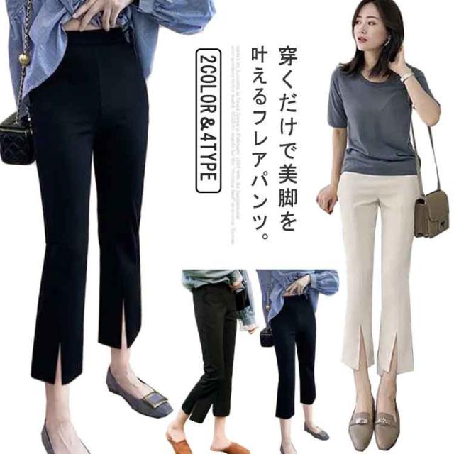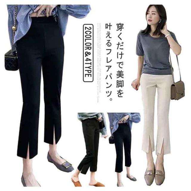 フレアパンツ レディース ロングパンツ スリット トレッチパンツ 大きいサイズ 夏 秋 センタースリット フレア クロップドパンツ 七分丈 八分丈 九分丈 伸縮性 スリム 美脚 オフィス ビジネス カジュアルパンツ