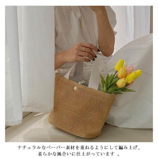 | 春夏のお出かけに連れて行きたい、爽やかなかごバッグです。 容量はしっかりあり、携帯、化粧ポーチ、長財布などの日用品をたっぷり入ります。 毎日のスタイリングに合わせやすい、カジュアルでシンプルなデザインです。 ナチュラルなペーパー素材を重ねるようにして編み上げ、柔らかな風合いに仕上がっています 。 通勤やデートや旅行などの場合、オールシーズンも使える万能バッグ。 | |